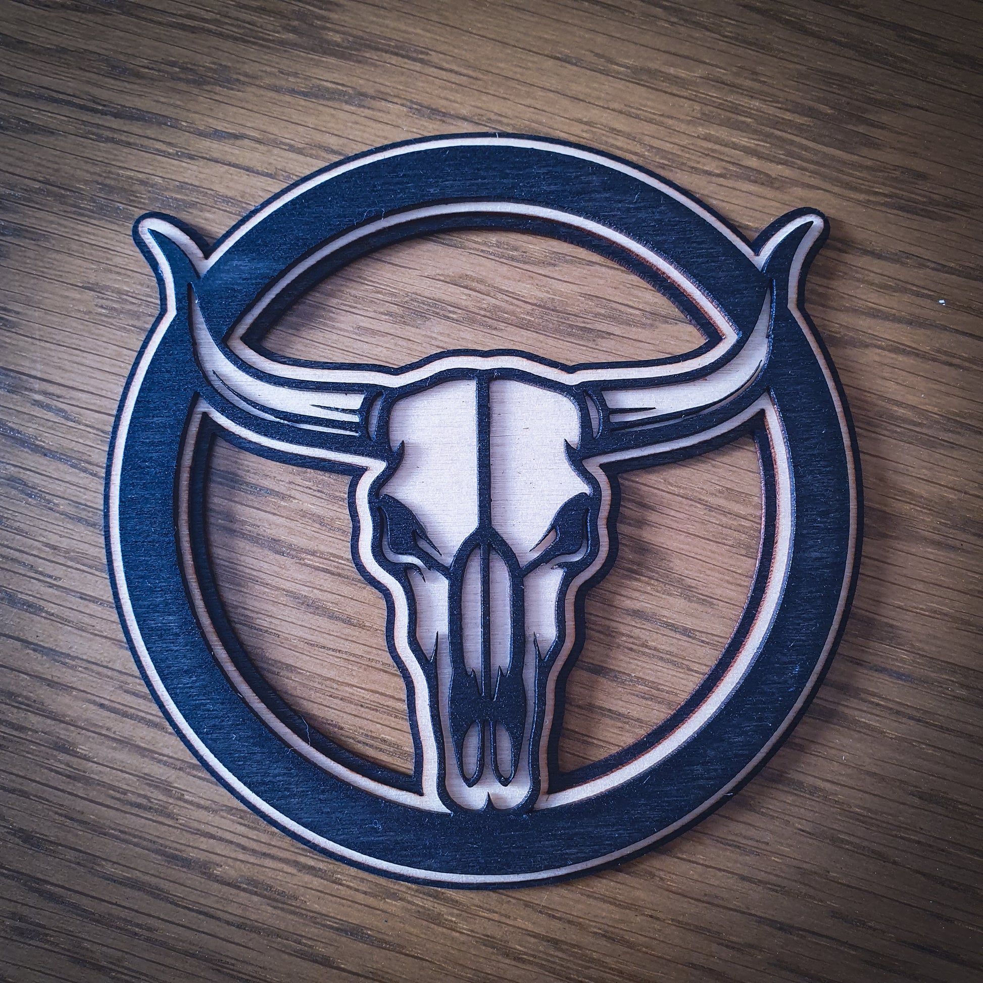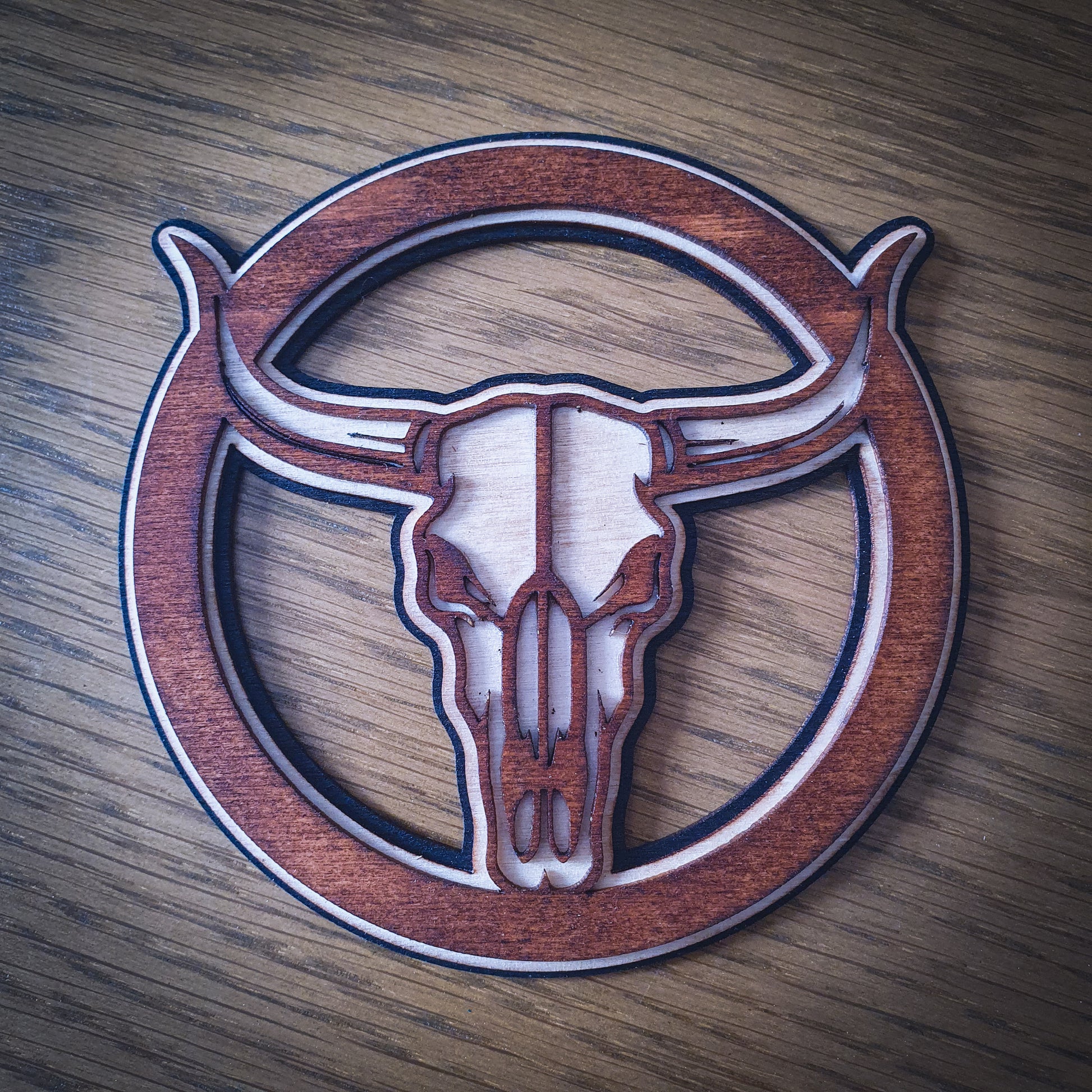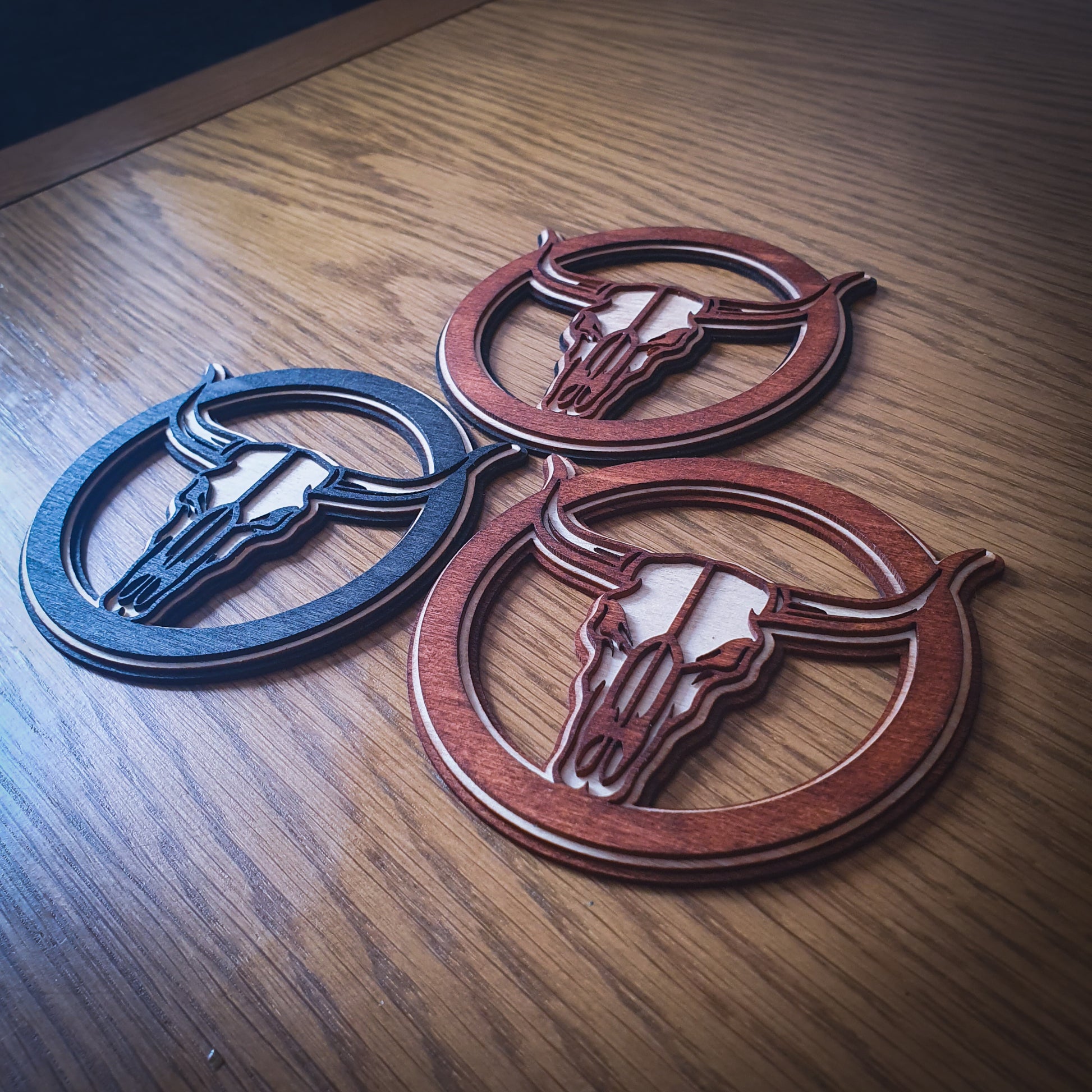 3D Longhorn Skull Wooden Coaster – Triple Layer Laser Cut Western Decor, Rustic Cowboy Gift, Country Style Drink Mat