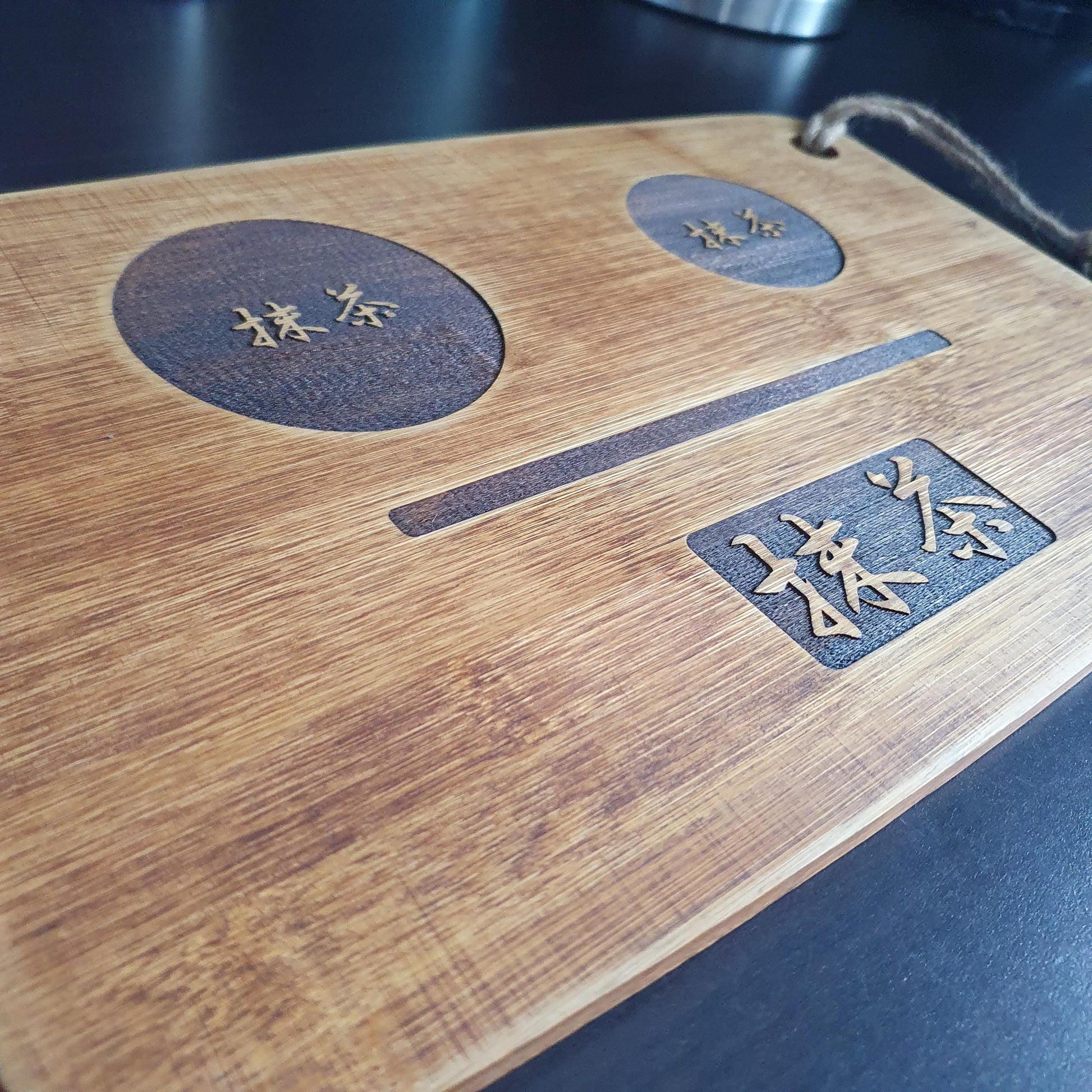 Japanese Kanji for "Matcha" engraved on the board